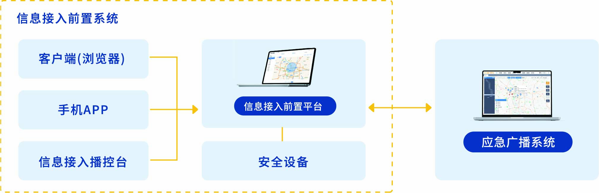 信息接入前置平臺是一款適用于預警部門(如水利、氣象等)的軟件,支持預警部門根據需求發布預警信息,并利用應急廣播平臺資源進行廣播,從而實現通知廣大民眾的效果。其次,支持預警部門通過此款軟件了解廣播發布情況與效果。