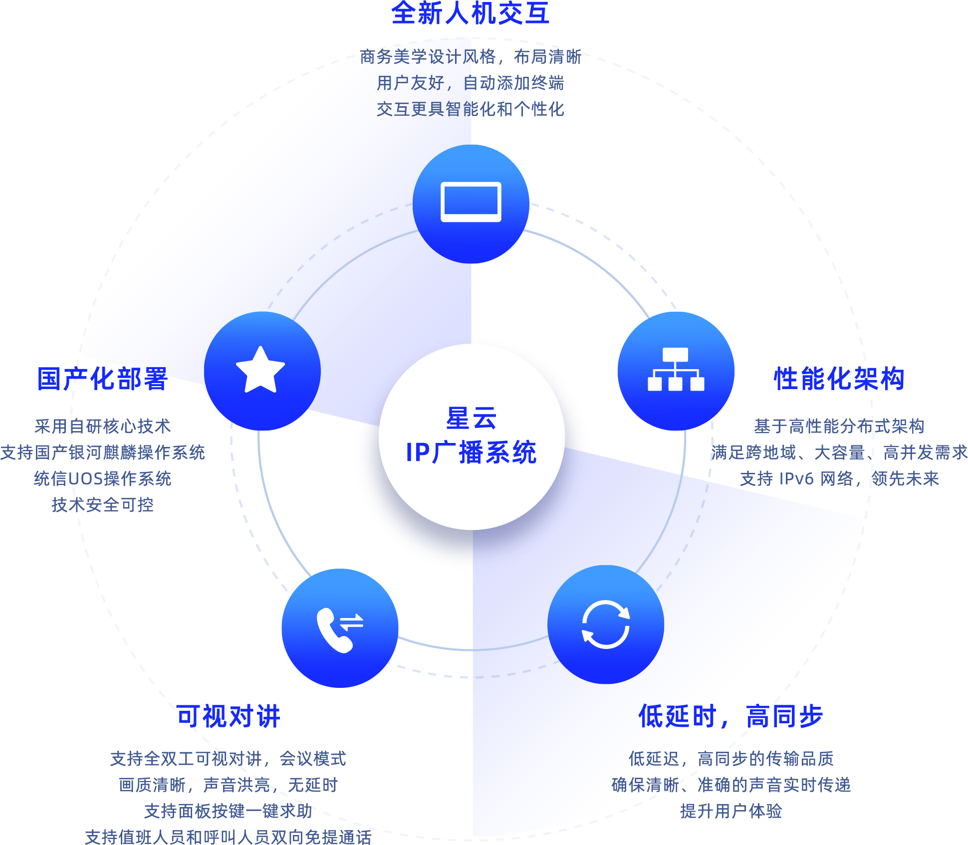 星云IP廣播系統(tǒng)支持多操作系統(tǒng),包括Windows,Linux,國產(chǎn)麒麟操作系統(tǒng),兼容性與安全性更高,支持多級管理與系統(tǒng)級無限擴展。支持多種部署方式,包括公有云,私有云,以及專網(wǎng)部署。系統(tǒng)安裝、使用和維護簡單,只需將終端接入計算機網(wǎng)絡即可構(gòu)成功能強大的數(shù)字廣播系統(tǒng),多方面體現(xiàn)了其顯著的優(yōu)越性。