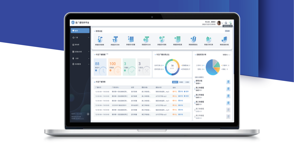 康通扎根教育行業(yè),深入業(yè)務場景,建設以教學場景為核心,將物聯(lián)網(wǎng)、音視頻、云平臺等先進技術(shù)與教育場景深度融合,打造適用于新型現(xiàn)代校園的廣播系統(tǒng),實現(xiàn)校園廣播業(yè)務處理的智能化和一體化。